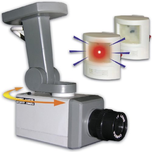 3 Piece Sensor Activated Security SystemA great security system with a simulated camera and motion sensors. Built-in sensors detect intruders, protects 3 separate areas, adjustable angle mounting brackets. Includes simulated camera and 2 alarms with sound and lights.All the detrerrence of a video security system at a fraction of the cost. Simulated camera pans right and left while the LED lights come on. Alarm tilts in 4 different positions.Place alarm inside or outside your house, place the camera outside your door or garage, business or any where you want security.